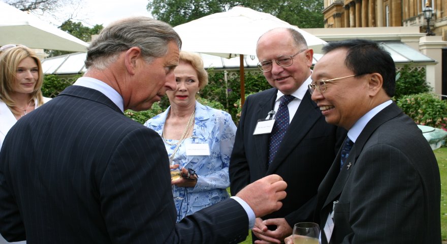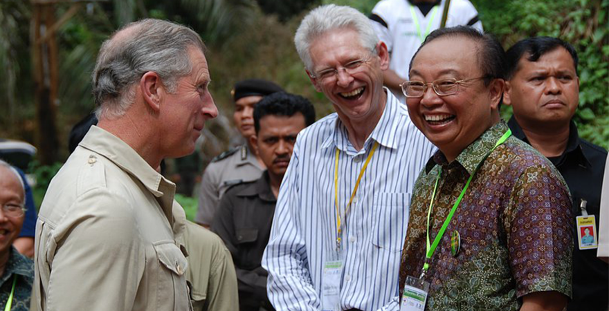 与查尔斯王子(Prince Charles)在克拉伦斯府 Boedi 与查尔斯王子在伦敦王府讨论森林生态恢复项目