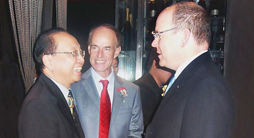 新加坡持续性讨论会 Boedi、摩纳哥阿尔贝王子和世界自然基金会WWF全球总干事马可•兰博蒂尼(Marco Labertini)在讨论环境保护