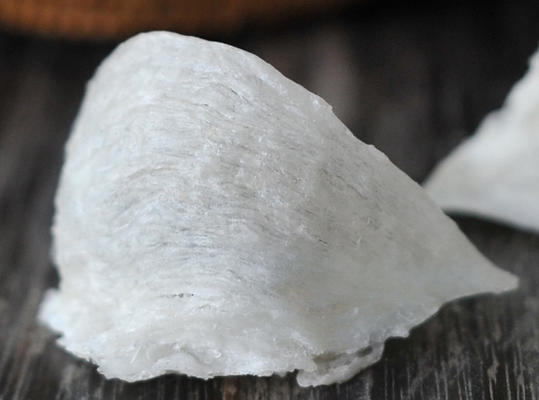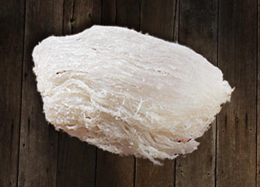 有稍可见或平纤维的燕窝代表着经过过多加工,而过多加工可降低燕窝原状、梅素和营养价值。(图右下)